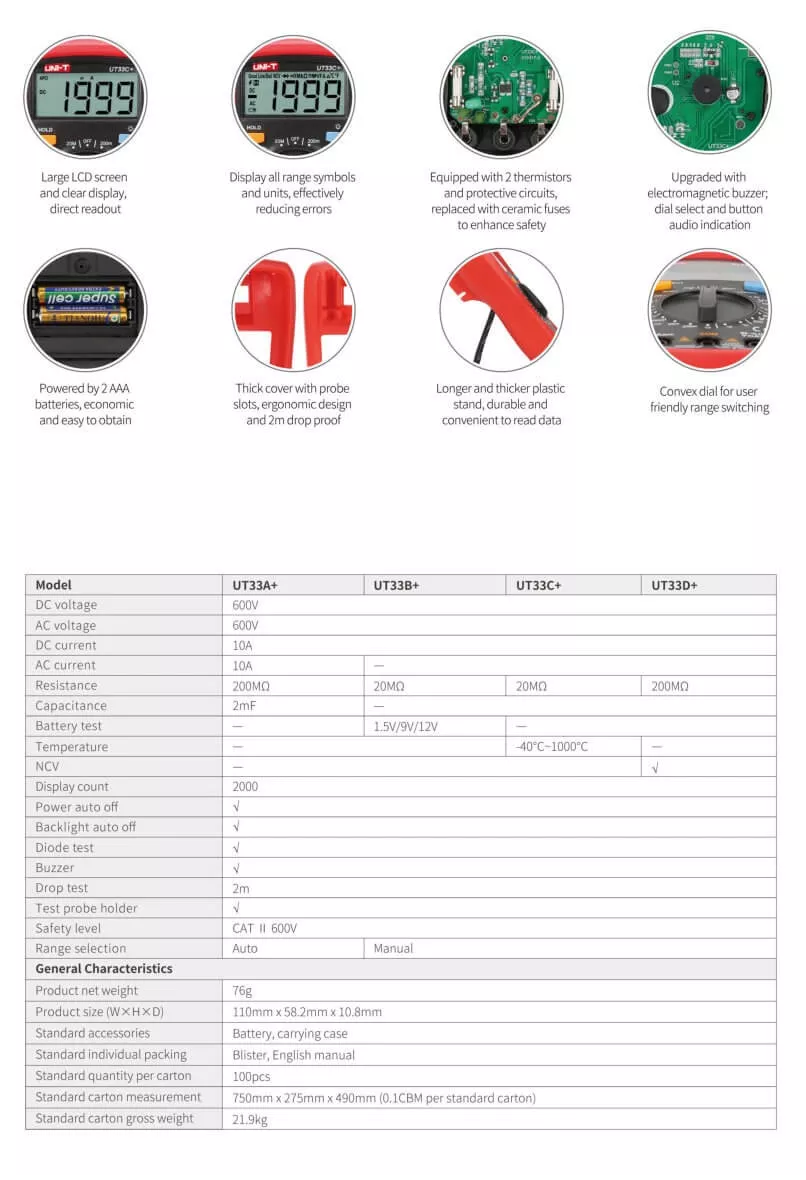 Multímetro Digital Compacto UNI-T UT33A-PLUS Tester