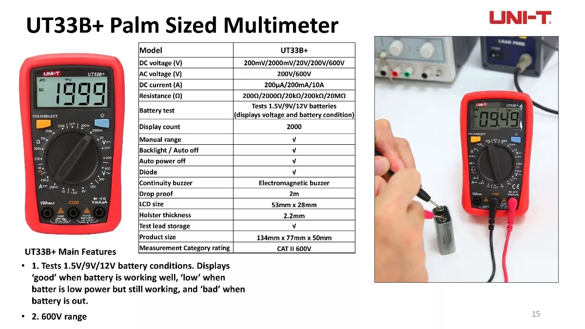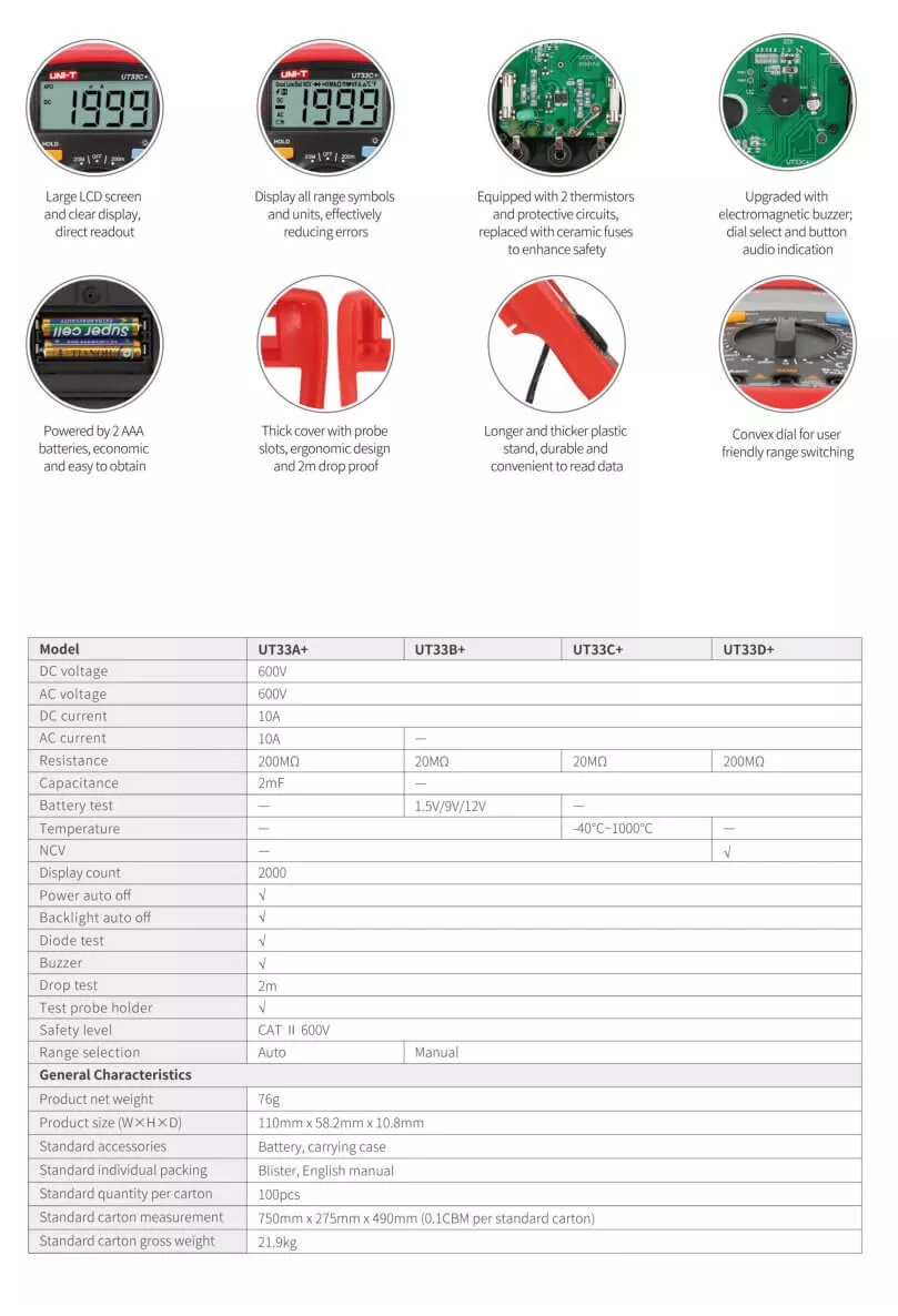 Multímetro Digital Compacto UNI-T UT33B-PLUS Tester