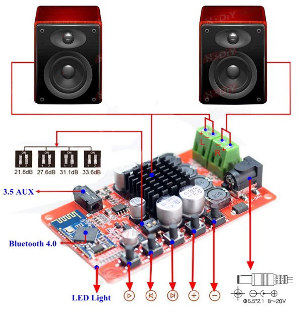 Impedancia:8 Ohms recomendada (soporta parlantes 4,6,8,16 Ohms)