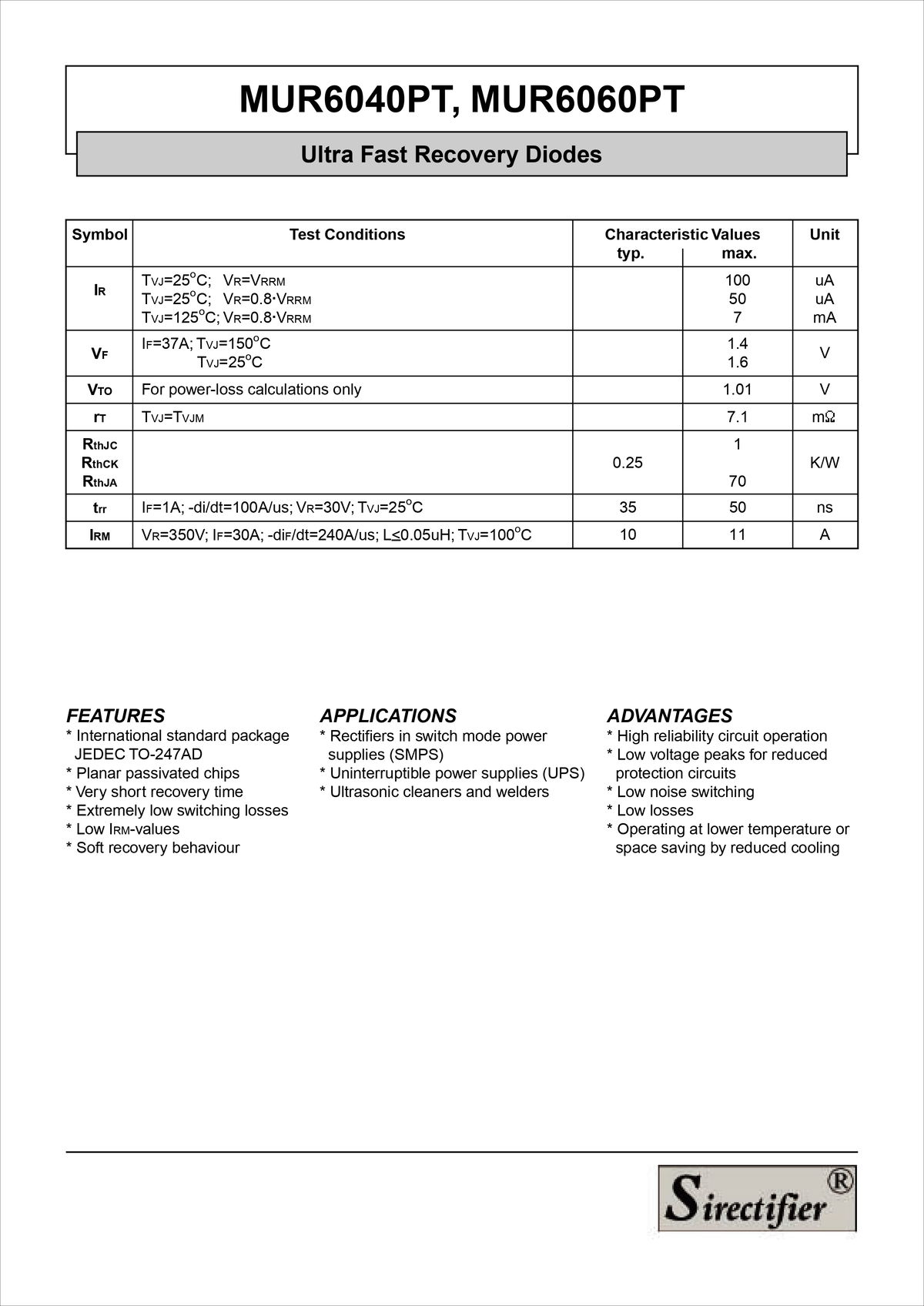 ULTRA FAST 600V 60A - TO247AC 3 PATAS